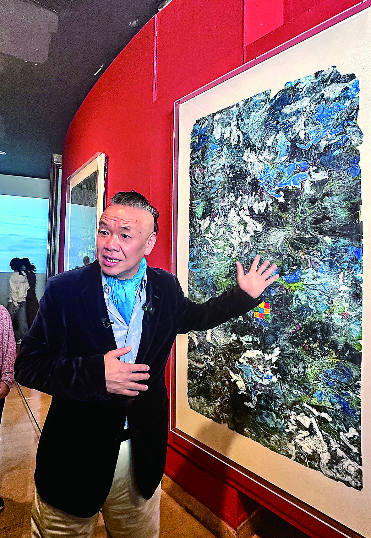 他被西方的印象派、抽象主义绘画吸引。有一年在巴黎看莫奈的画展,旅途劳顿,他看着看着睡着了,醒来的时候已近黄昏,一位志愿者告诉他,还有几分钟,莫奈笔下的塞纳河日落就要出现了。他急忙往河边赶,刚刚站定,就看到落日余晖下,整条塞纳河变成一条红色绸带,从远处扑面而来。“所有声音似乎都静止了,一个来自东方的年轻艺术家的心,扑通一下掉进了河里。”